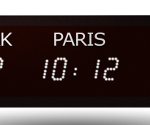 Специализированные цифровые часы с несколькими часовыми поясами, предназначенные для простой настройки по принципу «включай и работай». Возможен монтаж на стенах или одно- или двухсторонних кронштейнах для подвеса к потолку. Широкий диапазон моделей предлагает множество выбираемых пользователем и настраиваемых функций, и до 15 часовых поясов по вашему выбору. Названия городов могут быть напечатанными или программируемыми пользователем. Предлагается на выбор несколько цветов дисплея, размеров и параметров стиля. Многозонные дисплеи могут использоваться по отдельности или синхронизированы по сети с сервером времени.